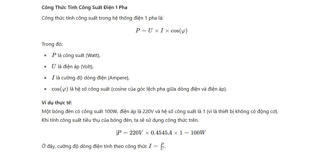 Đối với các thiết bị sử dụng điện 1 pha, bạn sẽ thấy rằng công suất sử dụng không quá lớn và dễ dàng quản lý.